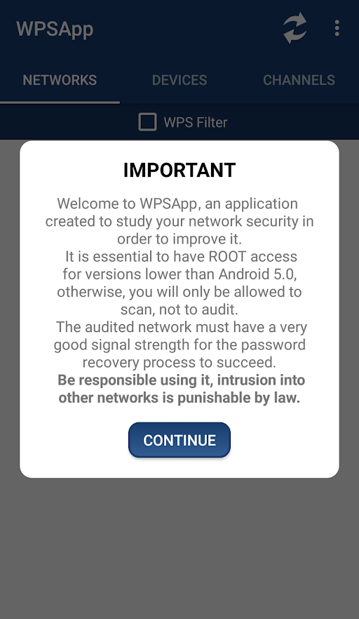يتحقق WPSApp من أمان الشبكة باستخدام بروتوكول WPS.